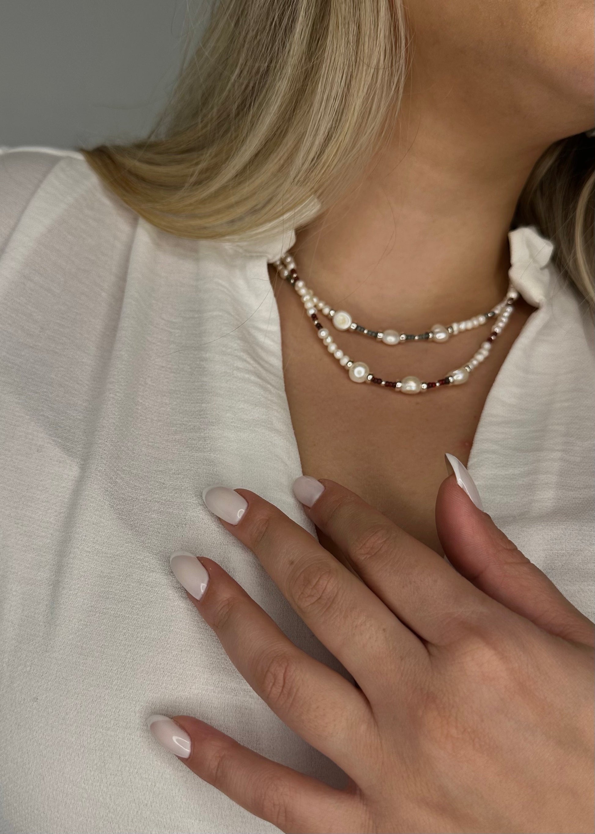 שרשרת לורן משלבת פנינים טבעיות בגדלים שונים יחד עם חרוזים צבעוניים. המצלה שלי? תבחרי לך חרוזים בצבעים כהים יותר לחורף, וצבעים קלילים יותר לקיץ!